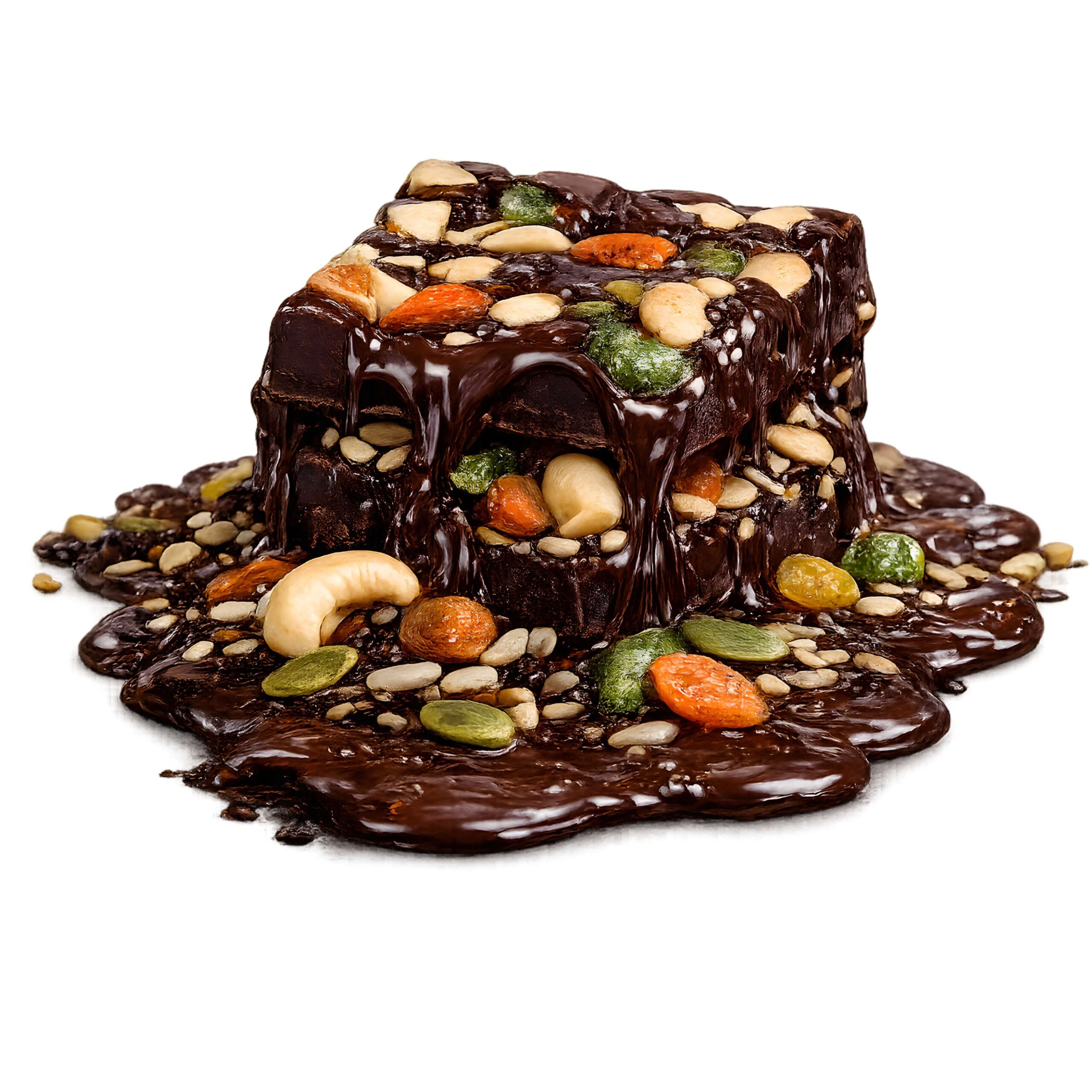 Experience the perfect blend of 20+ wholesome ingredients—rich dark chocolate, crunchy nuts, nutrient-packed seeds, and dried fruits, delivering a satisfying crunch and natural goodness.100% vegetarian
